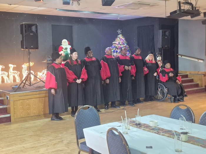 The choir were honoured to perform a selection of Christmas carols during the interval of the veterans banquet. The event was beautifully organised, with long tables filled with guests, creating a warm and festive atmosphere. Everyone enjoyed a traditional Christmas dinner featuring turkey with all the trimmings. The wonderful staff served a delicious pudding, a sweet finish to an excellent meal. We later learned that all the dishes had been prepared entirely from scratch—a testament to the care put into the event.